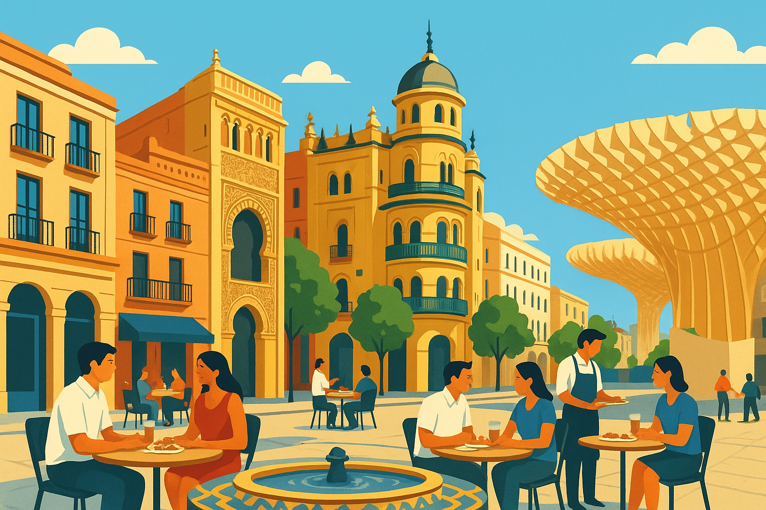Een van de meest opvallende moderne gebouwen is het Metropol Parasol, ook wel bekend als “Las Setas”. Dit houtachtige constructie biedt een spectaculair uitzicht over de stad en herbergt een markt, restaurants en een archeologisch museum.